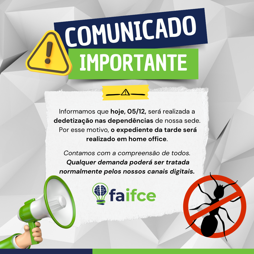 #Aviso #Comunicado #HomeOffice #Dedetização #Informativo #FAIFCE